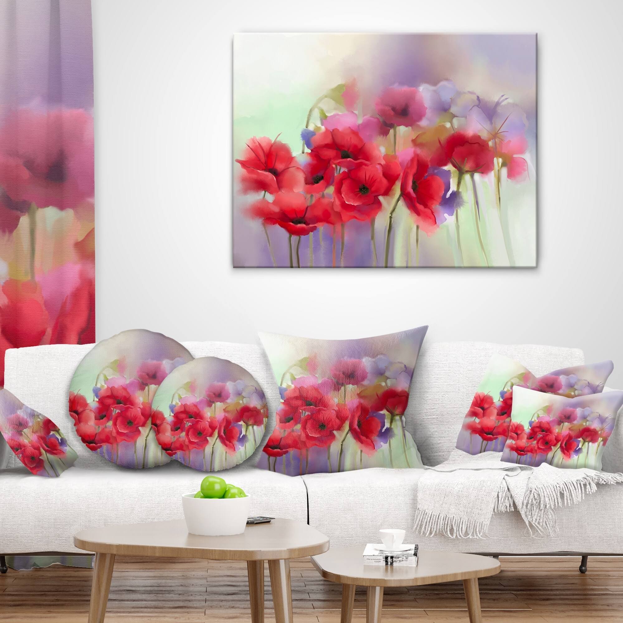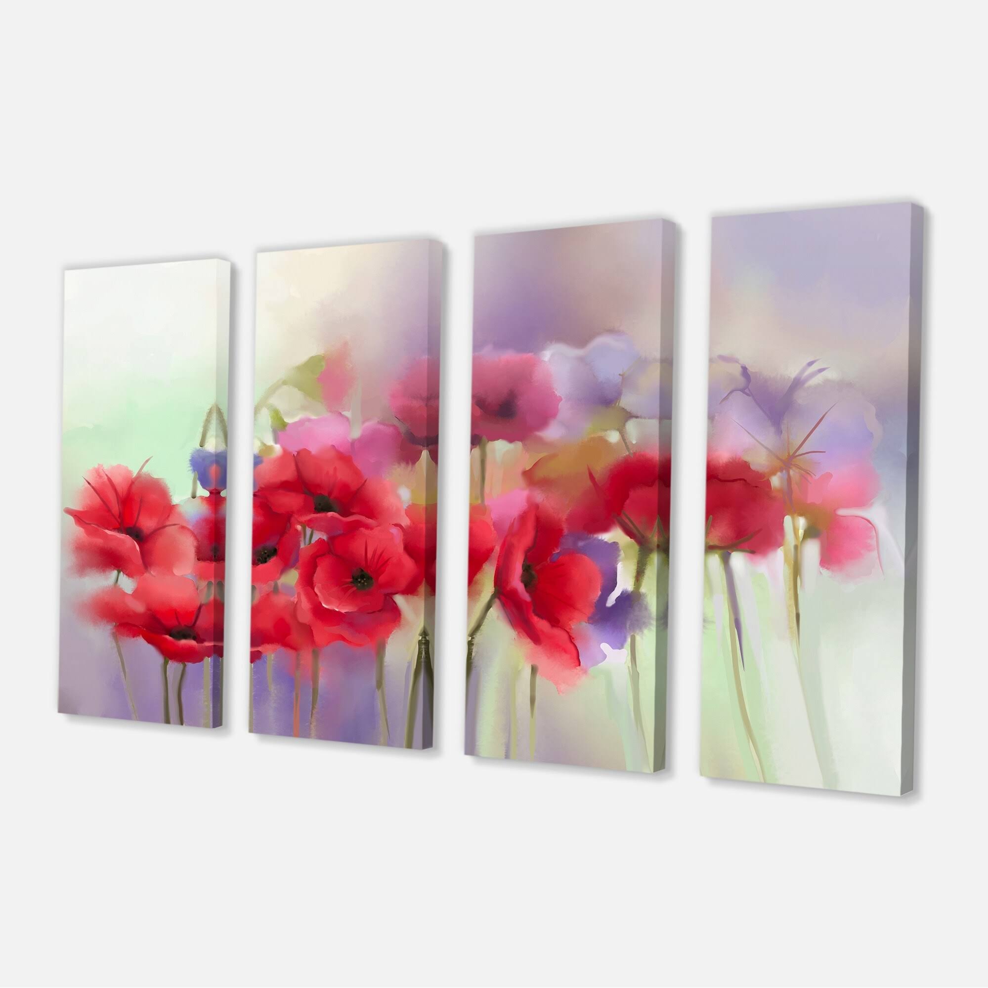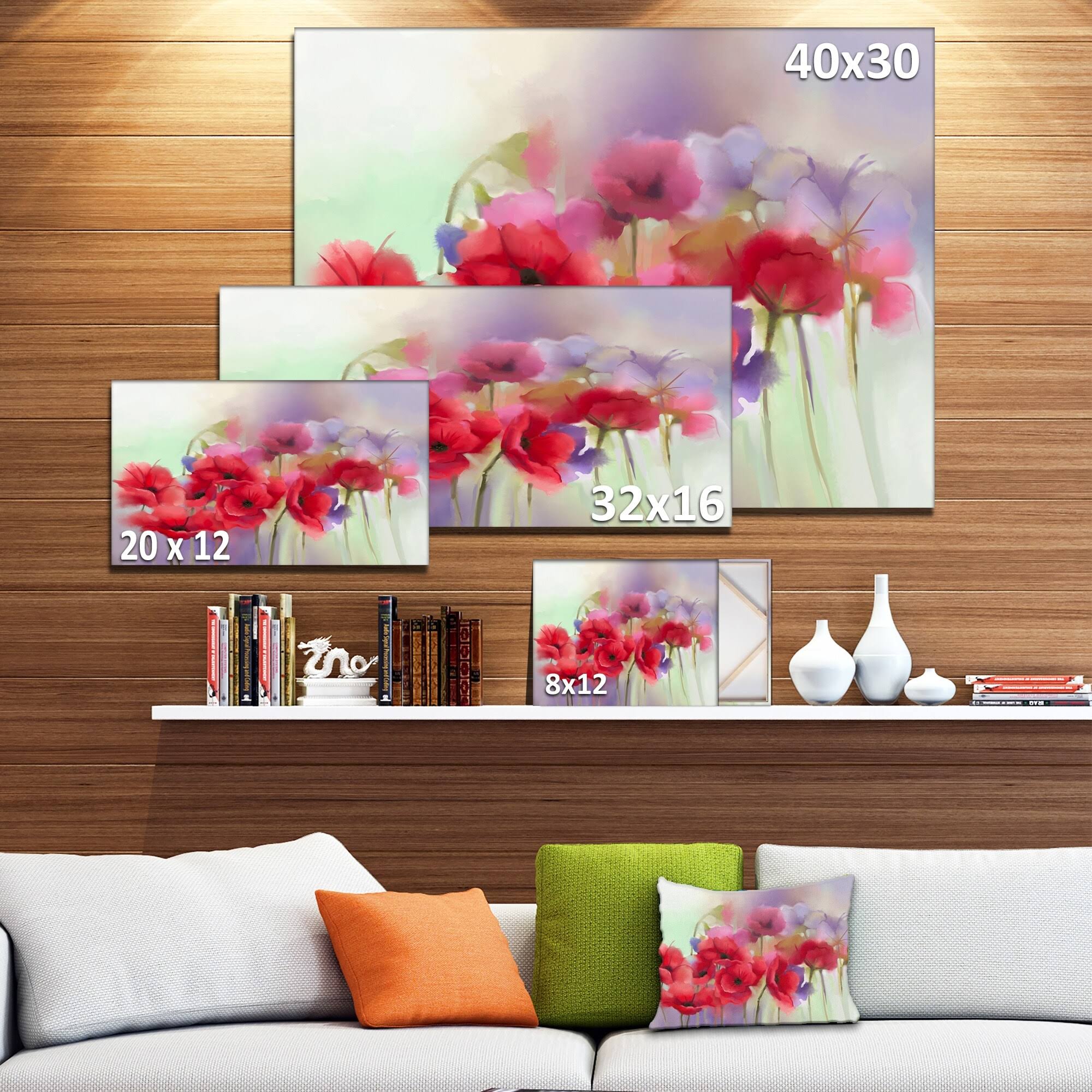 Design Art &Watercolor Red Poppy Flowers Painting& Painting Print on Wrapped Canvas GR4Y_KHL179
