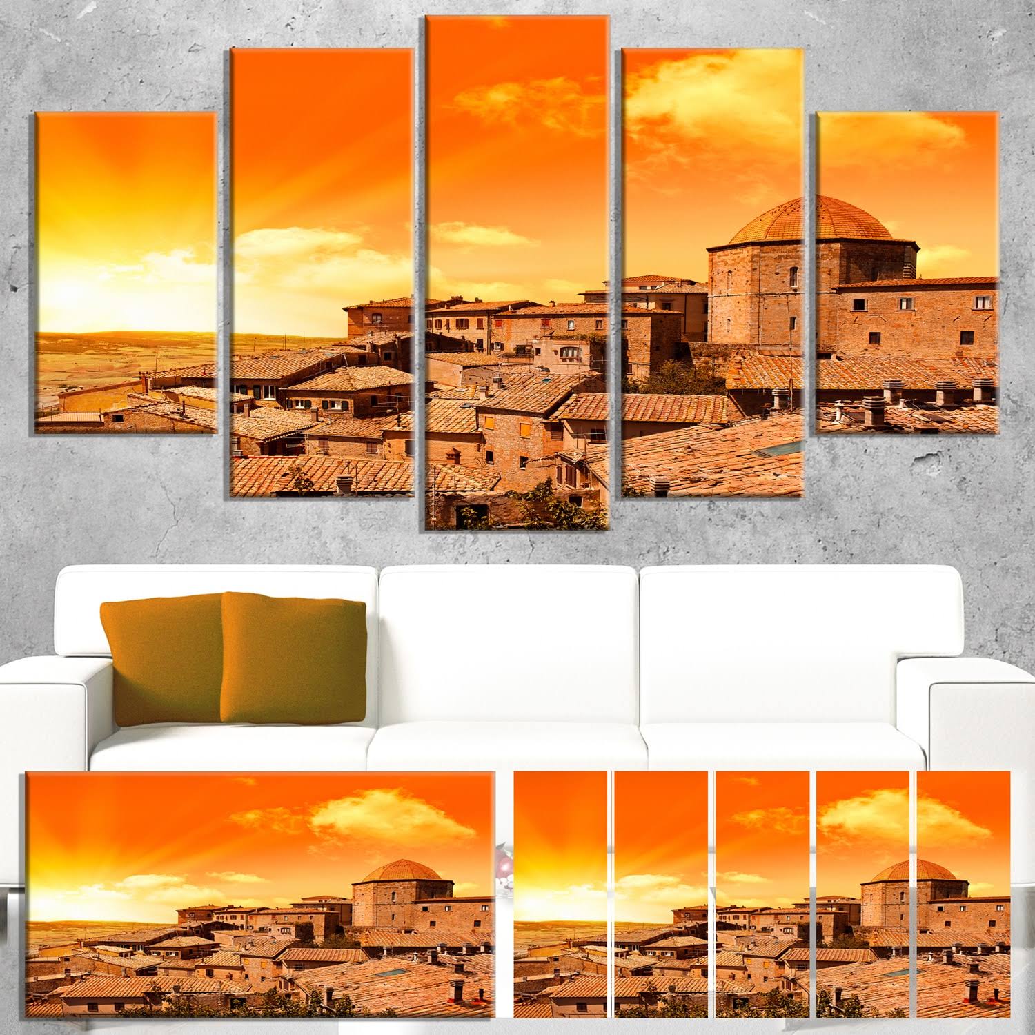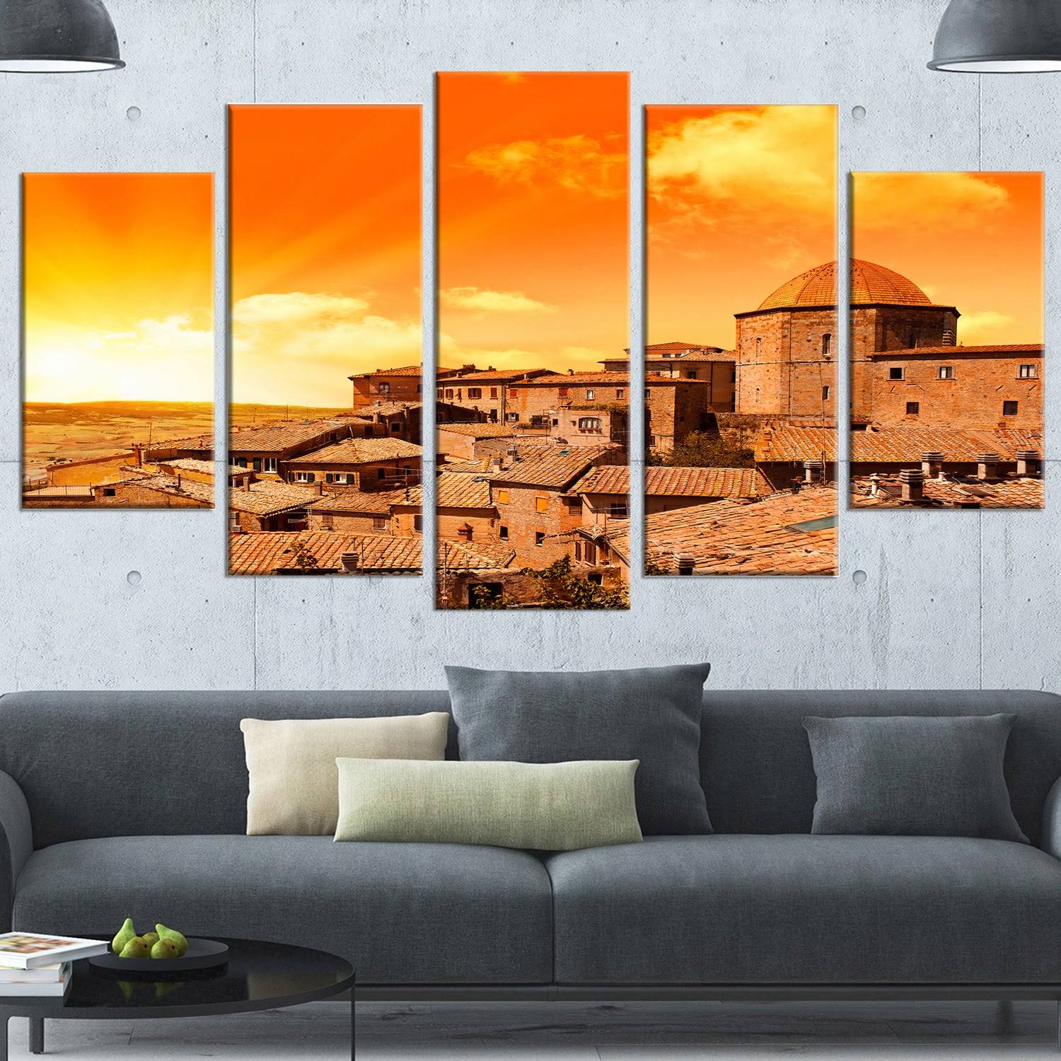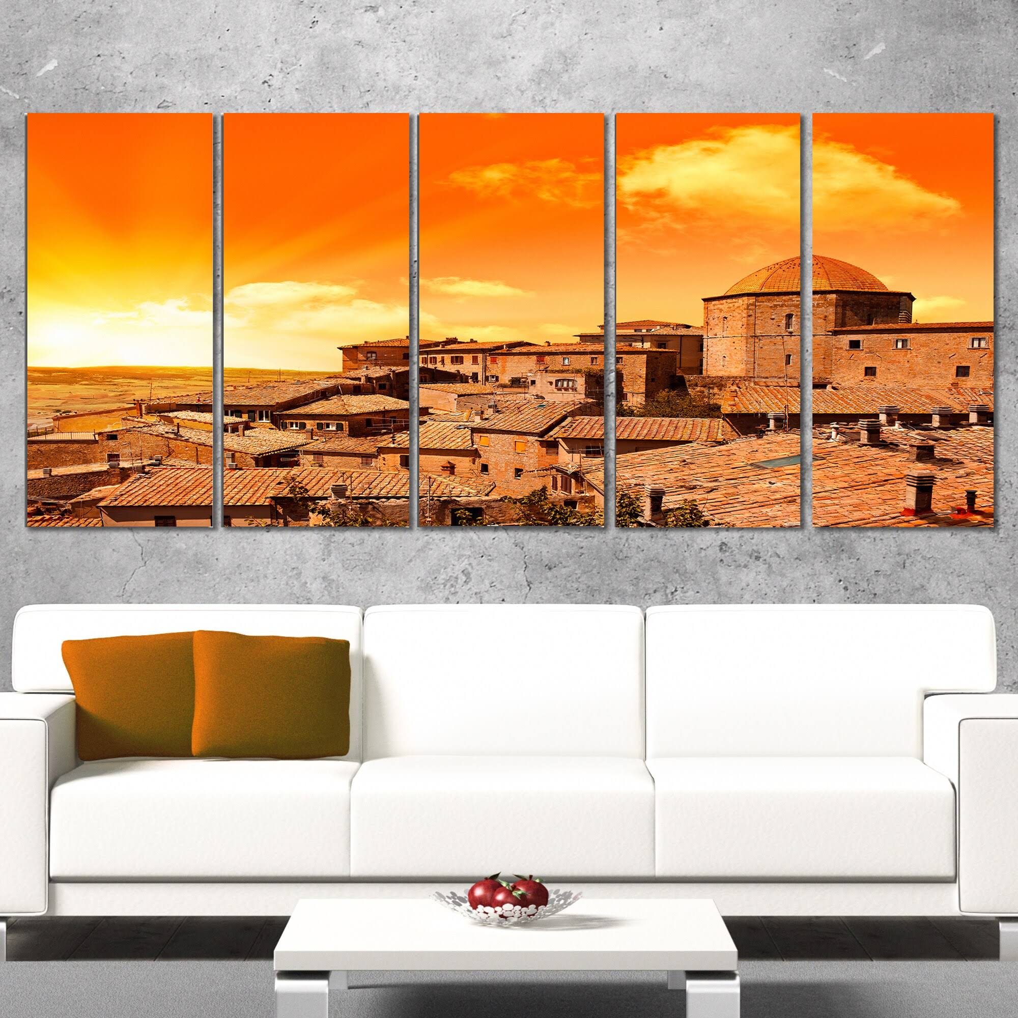 Design Art 'Wonderful Italy Tuscany Hill at Dawn' 5 Piece Photographic Print on Wrapped Canvas Set, Orange WT2Z_OUA250