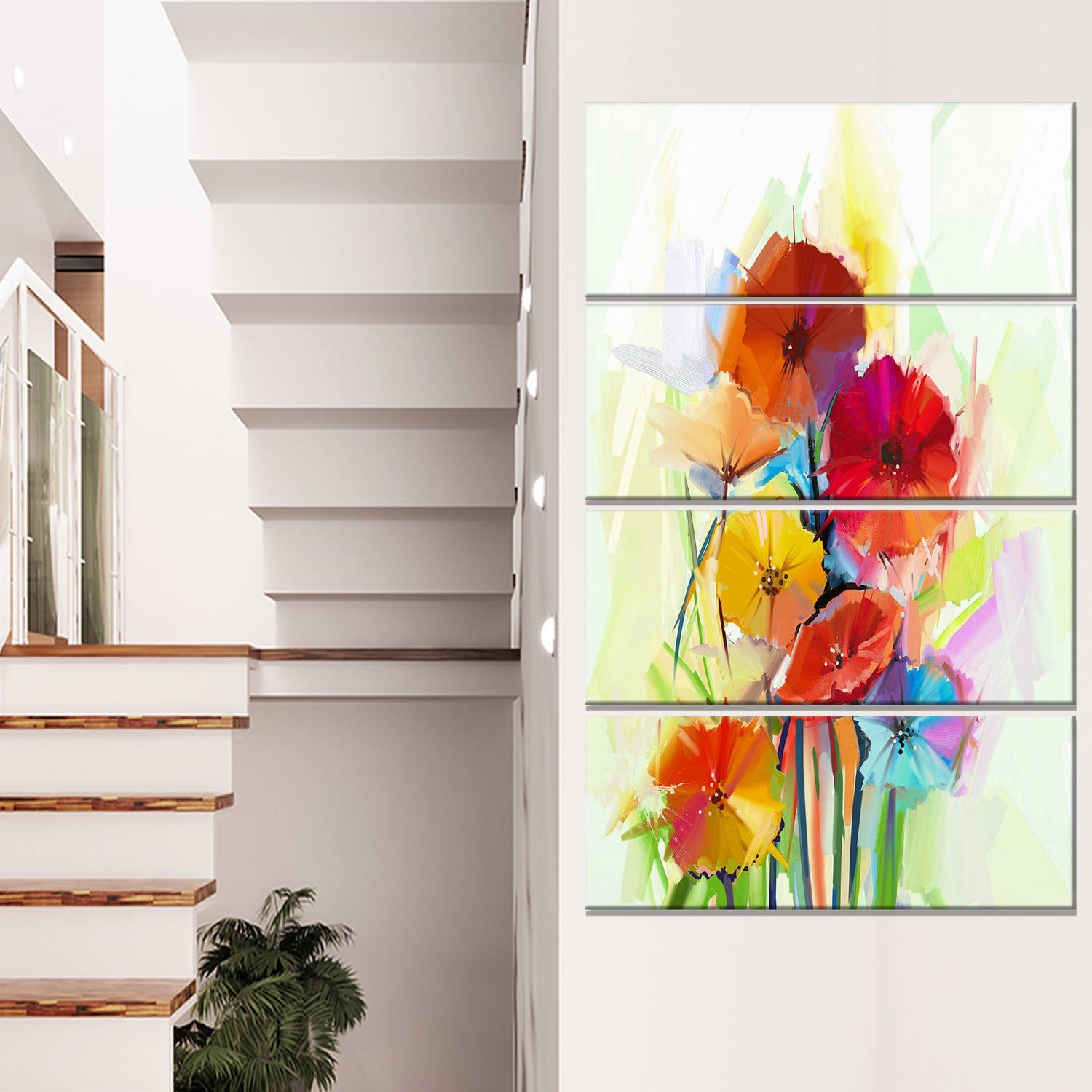 Design Art 'Yellow and Red Gerbera Flowers' 4 Piece Painting Print on Wrapped Canvas Set XQ9V_LXI178