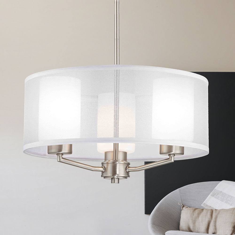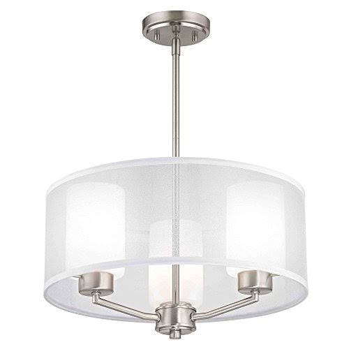 Design Classics Lighting Organza Drum Pendant Light Satin Nickel 3-Light - White Steel Ceiling Fixture - 11.25 in x 18 in OL0L_TOF600