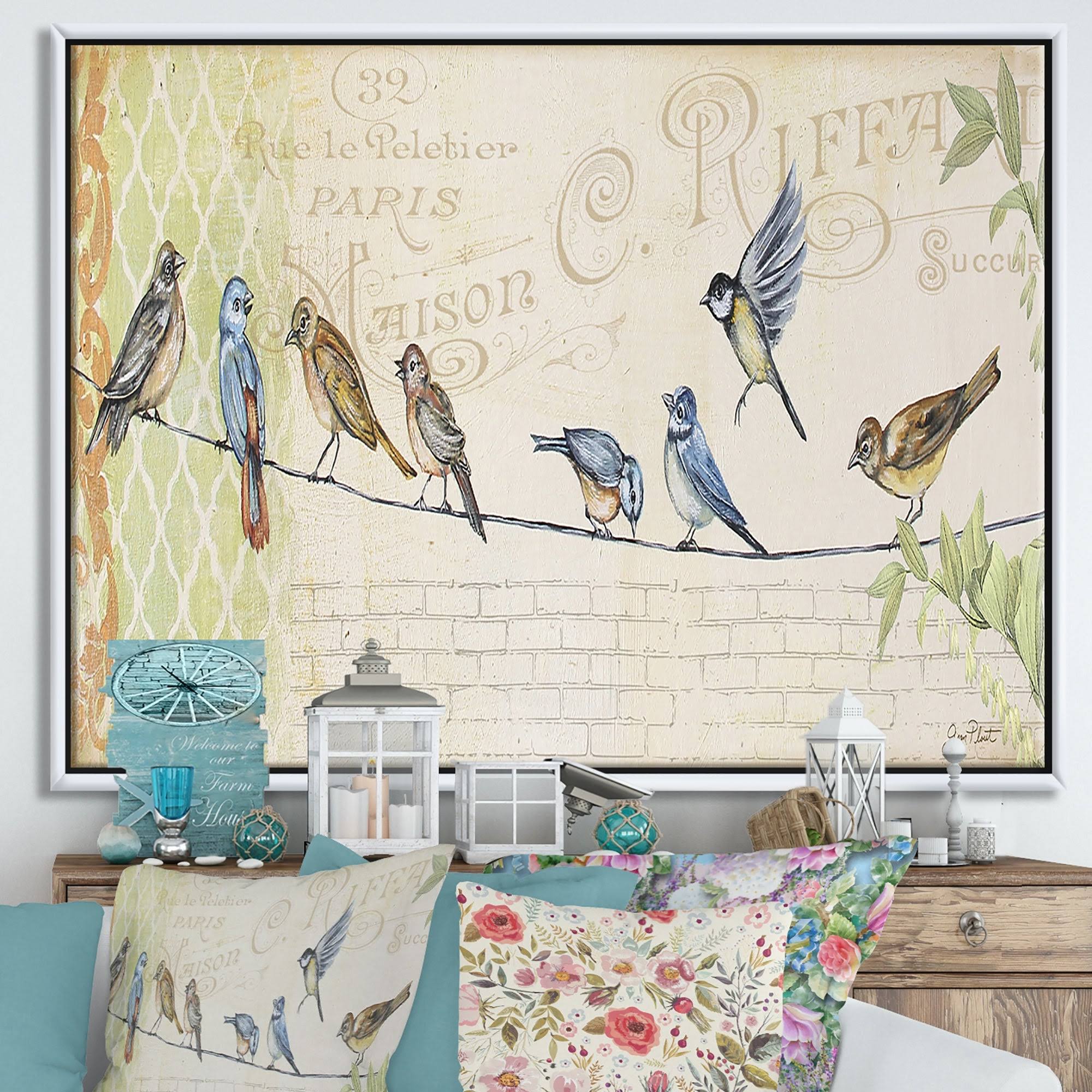 Designart 'Birds Gathered on Wire Paris III' Cottage Framed Canvas Art Print - 40 in. Wide x 30 in. High - Black JR2R_JMT396