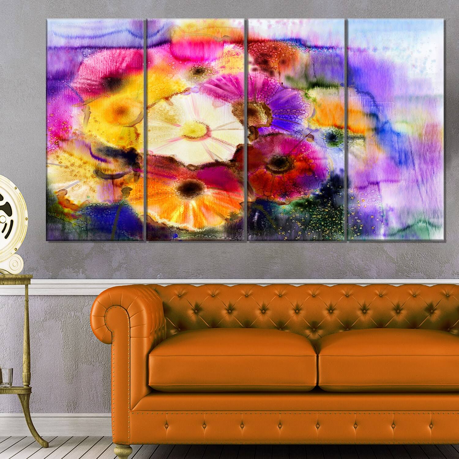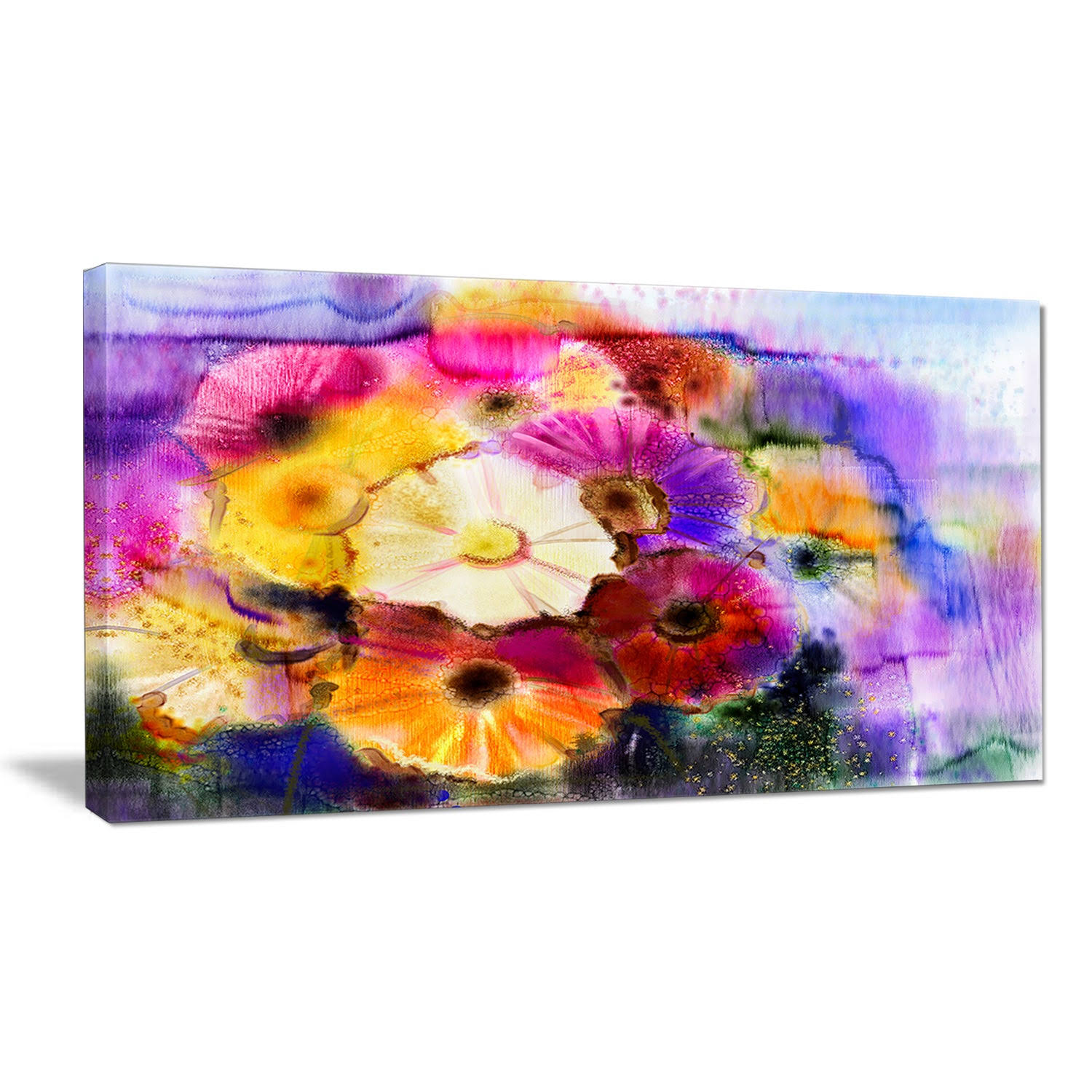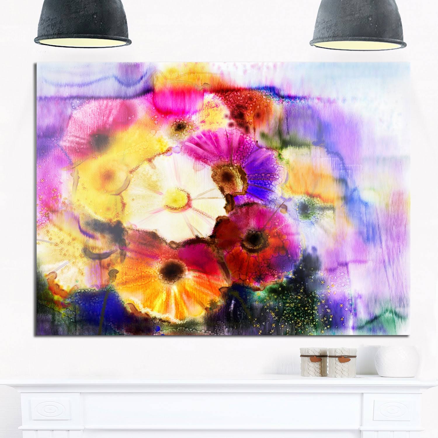 Designart 'Bunch of Colored Daisy Flowers' Modern Floral Wall Art Canvas - Purple - 40 in. Wide x 30 in. High - 1 Panel KV5T_LJL666