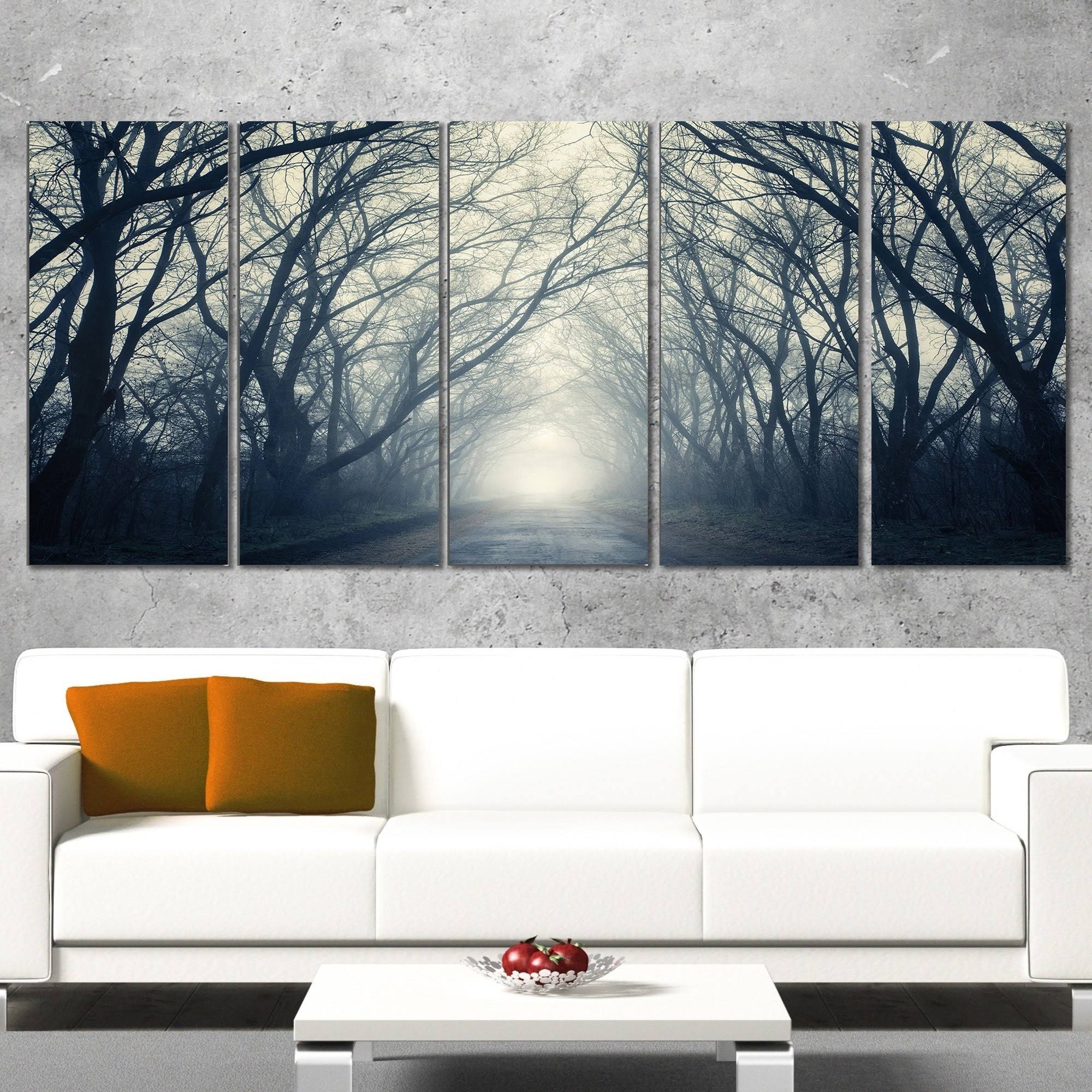 Designart &Dark Autumn Forest in Fog& 4 Piece Graphic Art on Wrapped Canvas Set QF7M_WPZ424