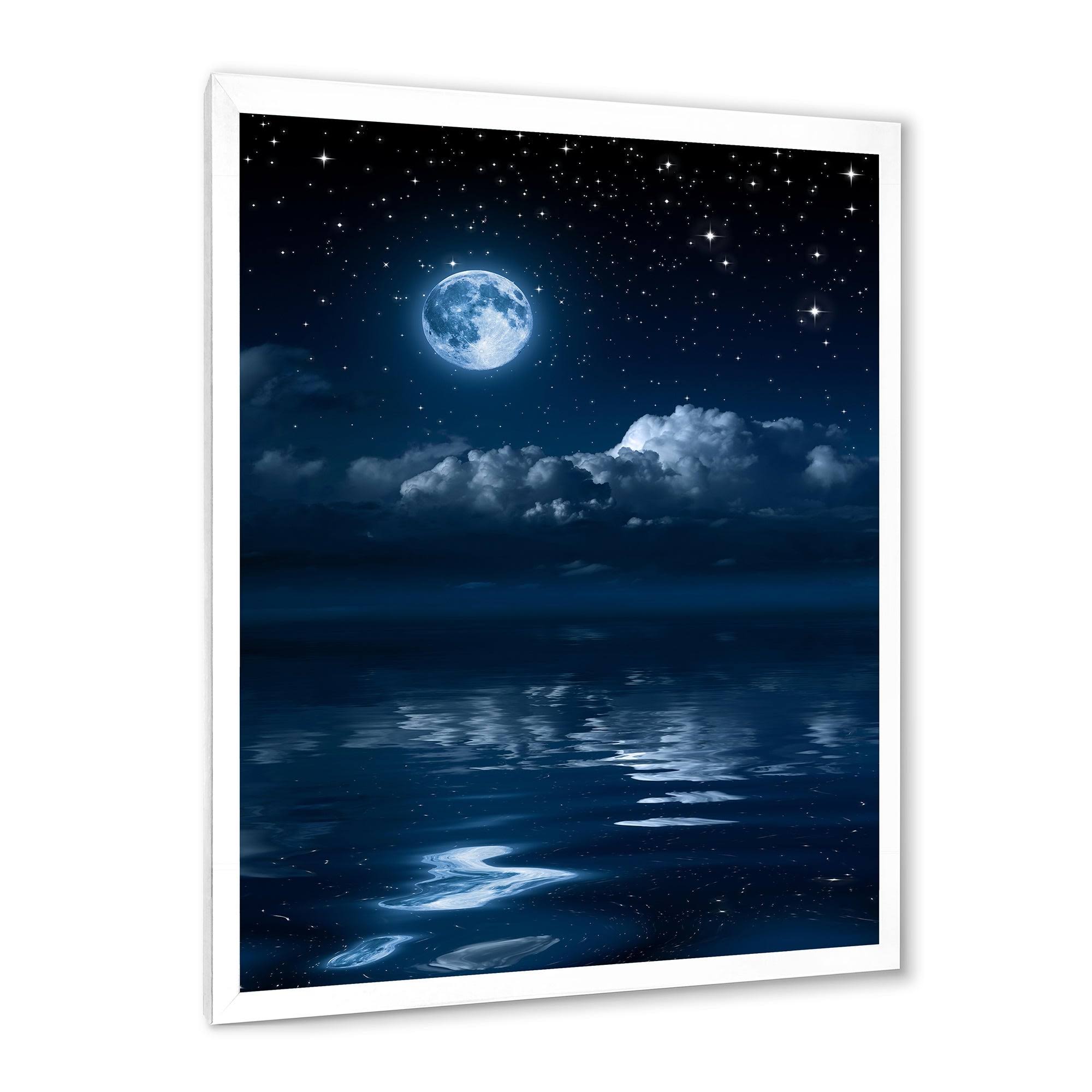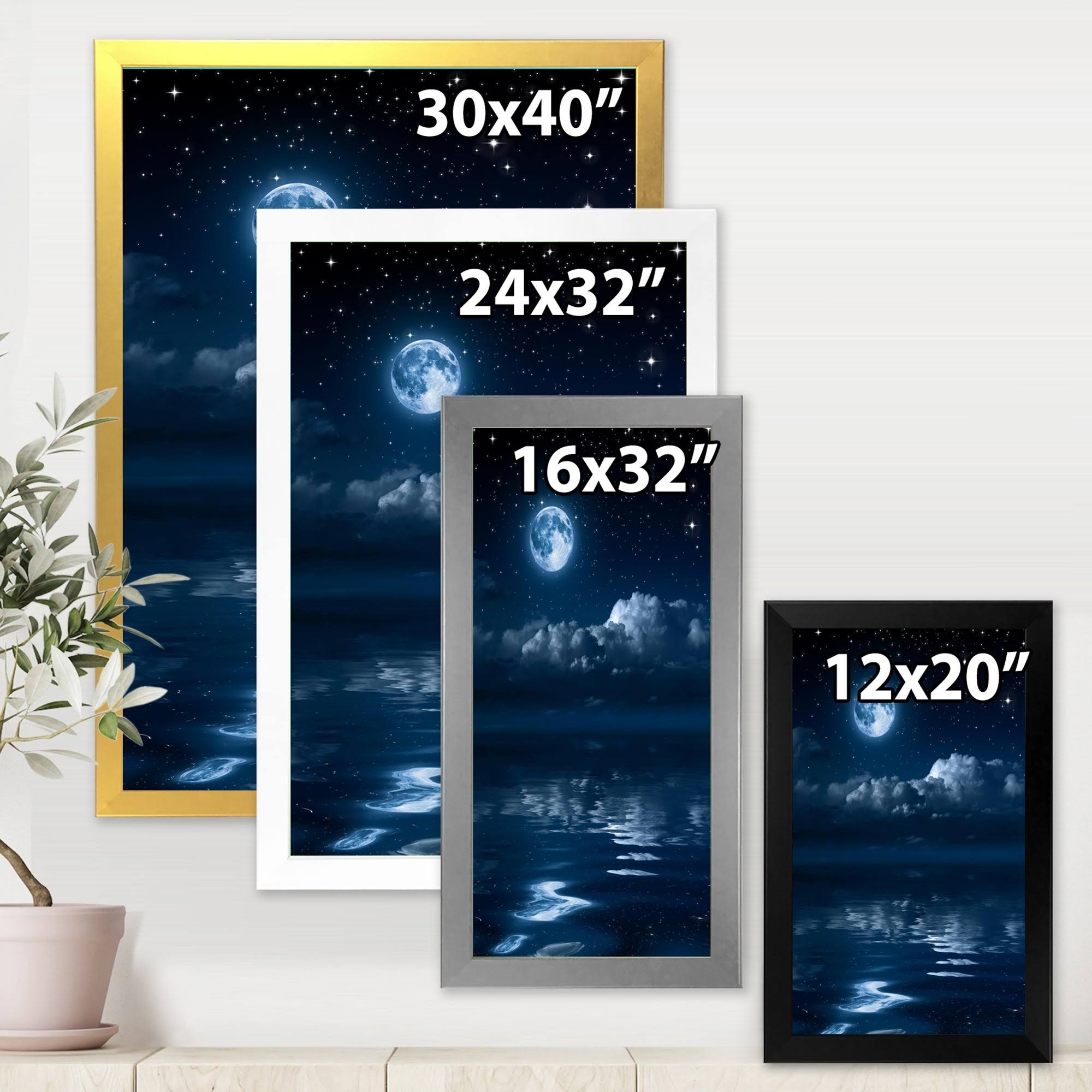 Designart &Full Moon in Cloudy Night Sky I& Nautical Coastal Framed Art Print - 24 in. Wide x 32 in. High - Gold OE3D_GIT317