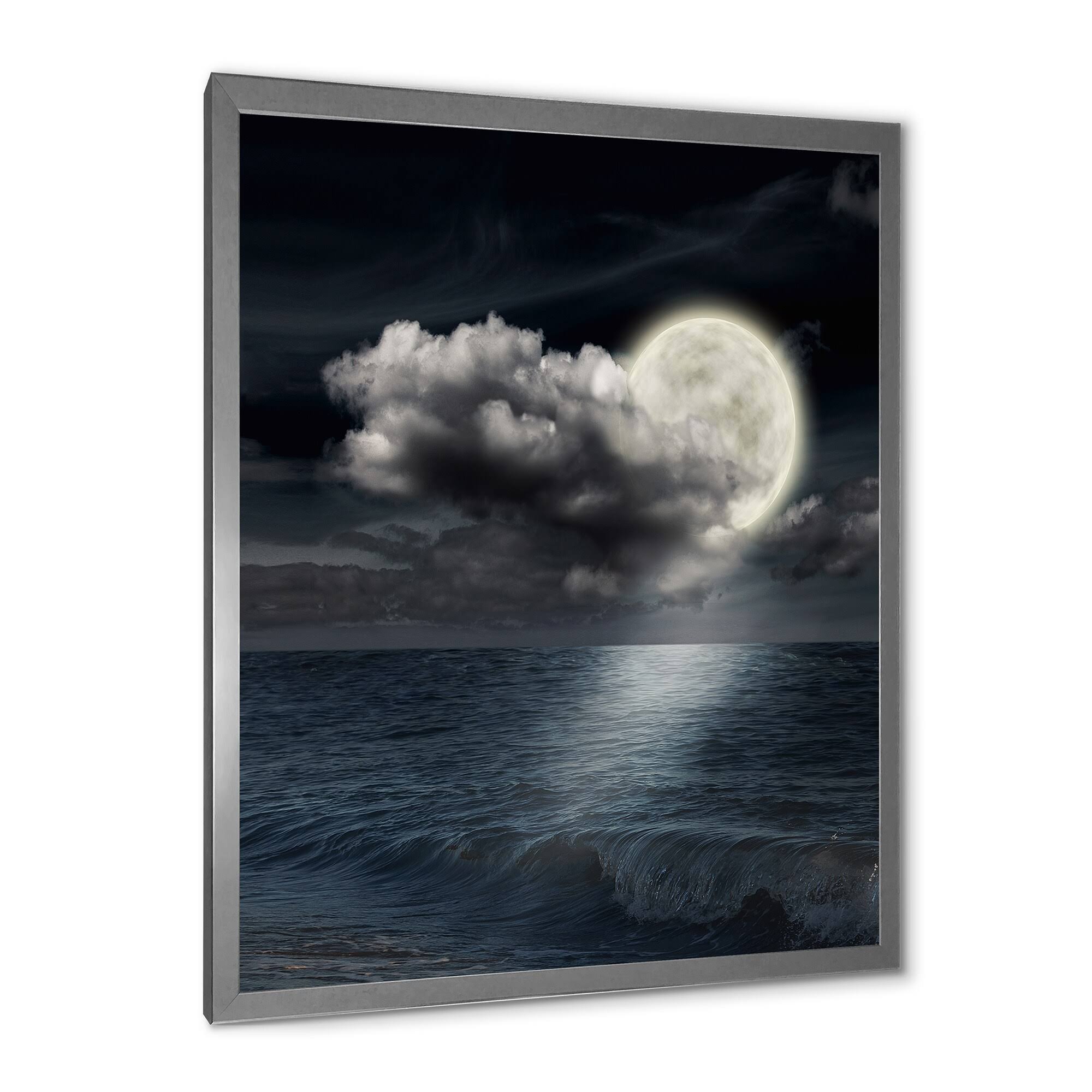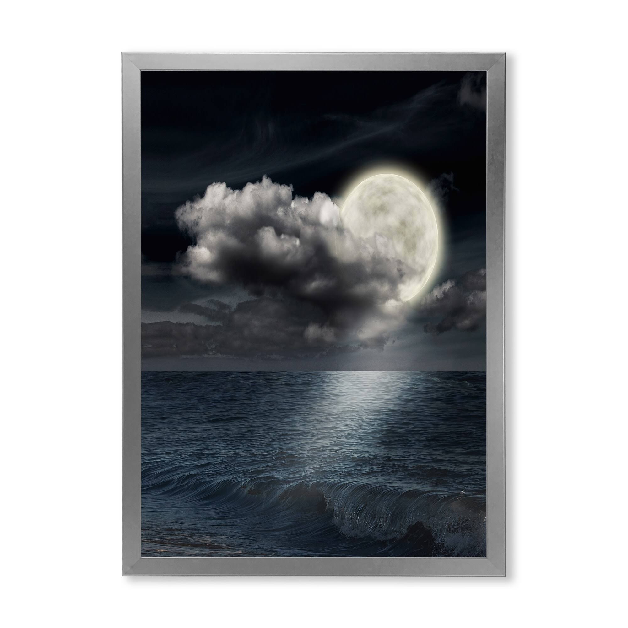 Designart &Full Moon in Cloudy Night Sky VI& Nautical Coastal Framed Art Print - 12 in. Wide x 20 in. High - Silver LH2T_BDR050