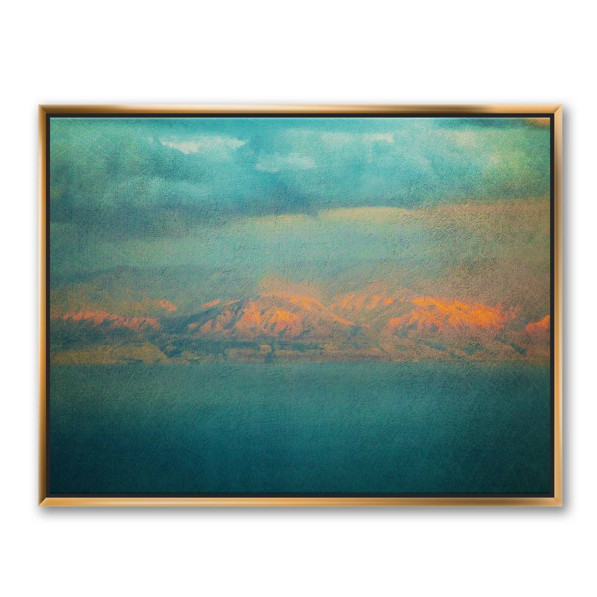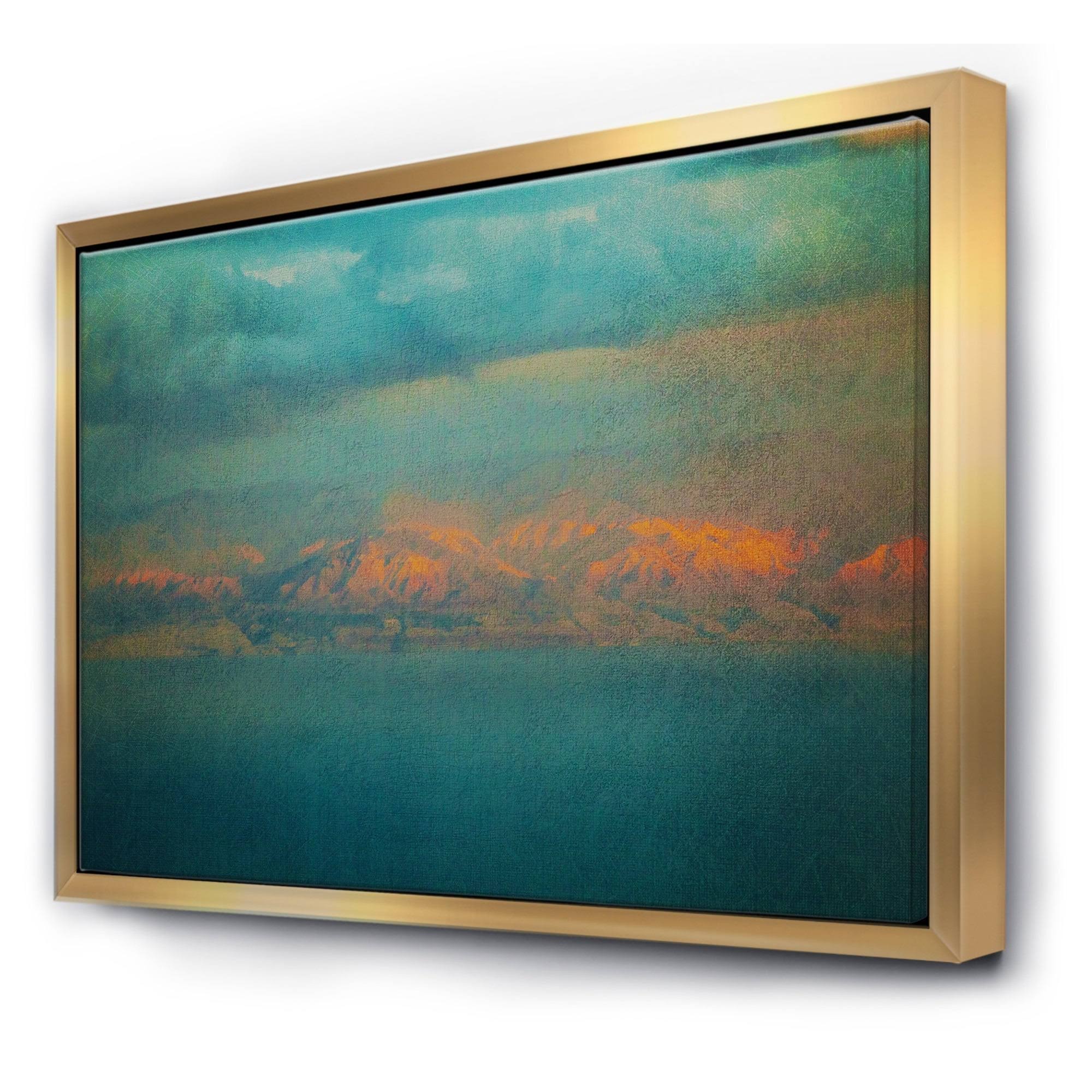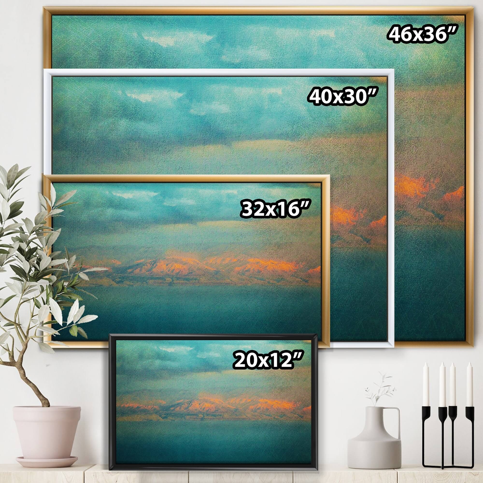 Designart &Glowing Mountains Over Sea Textured Vintage Image& Modern Contemporary Framed Canvas Wall Art Print - 32 in. Wi YY6E_OCE700