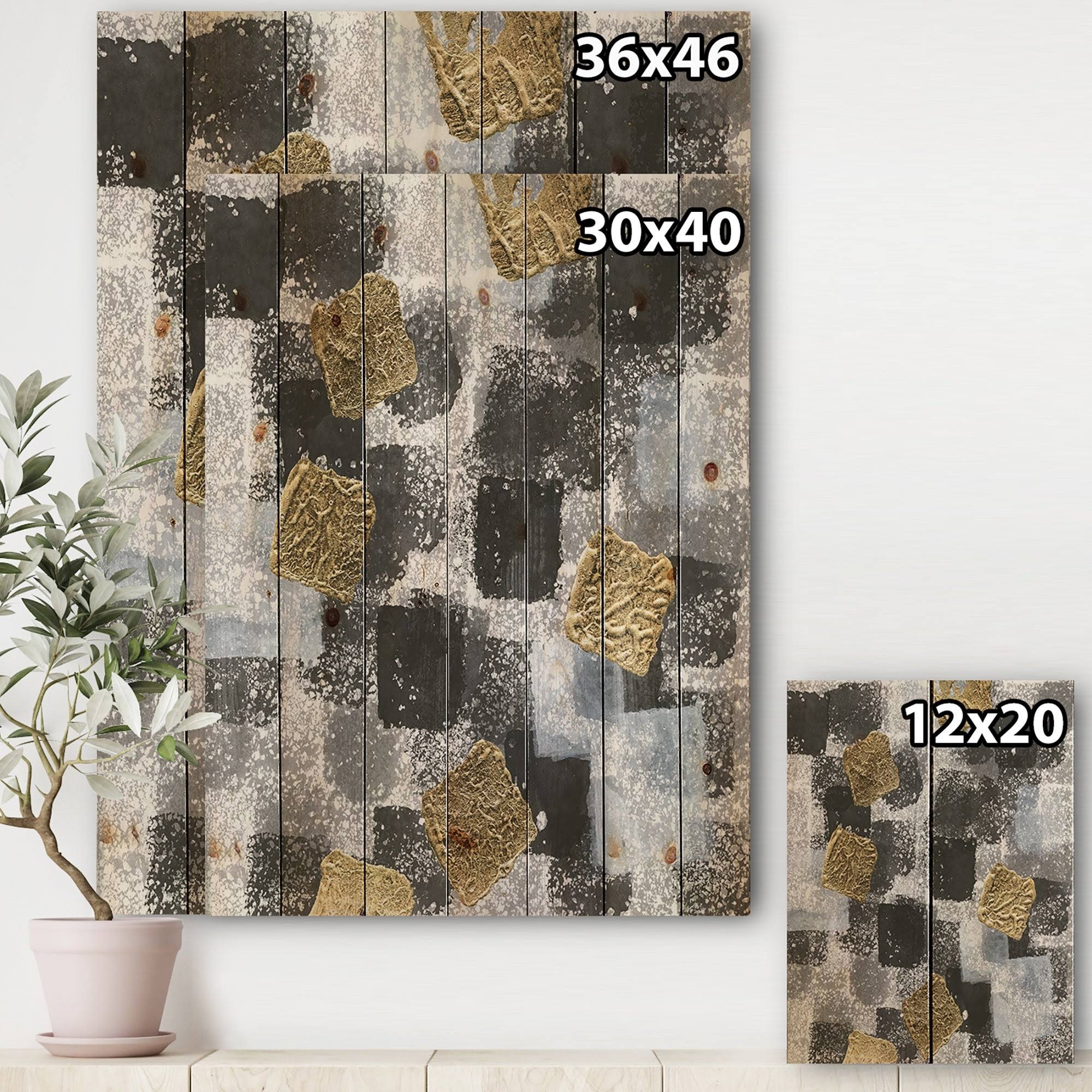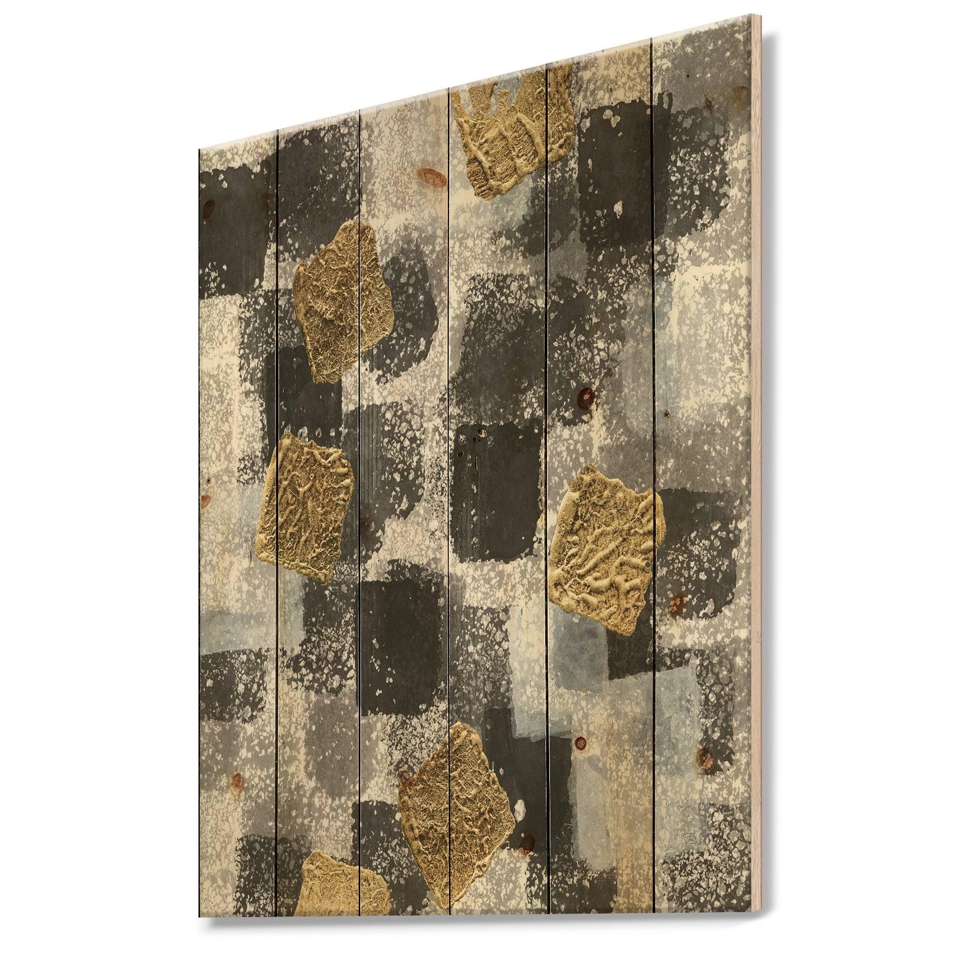 Designart &Gold Glamour Squares I& Modern Transitional Print on Natural Pine Wood - Black - 30 in. Wide x 40 in. High IM7B_BPU431