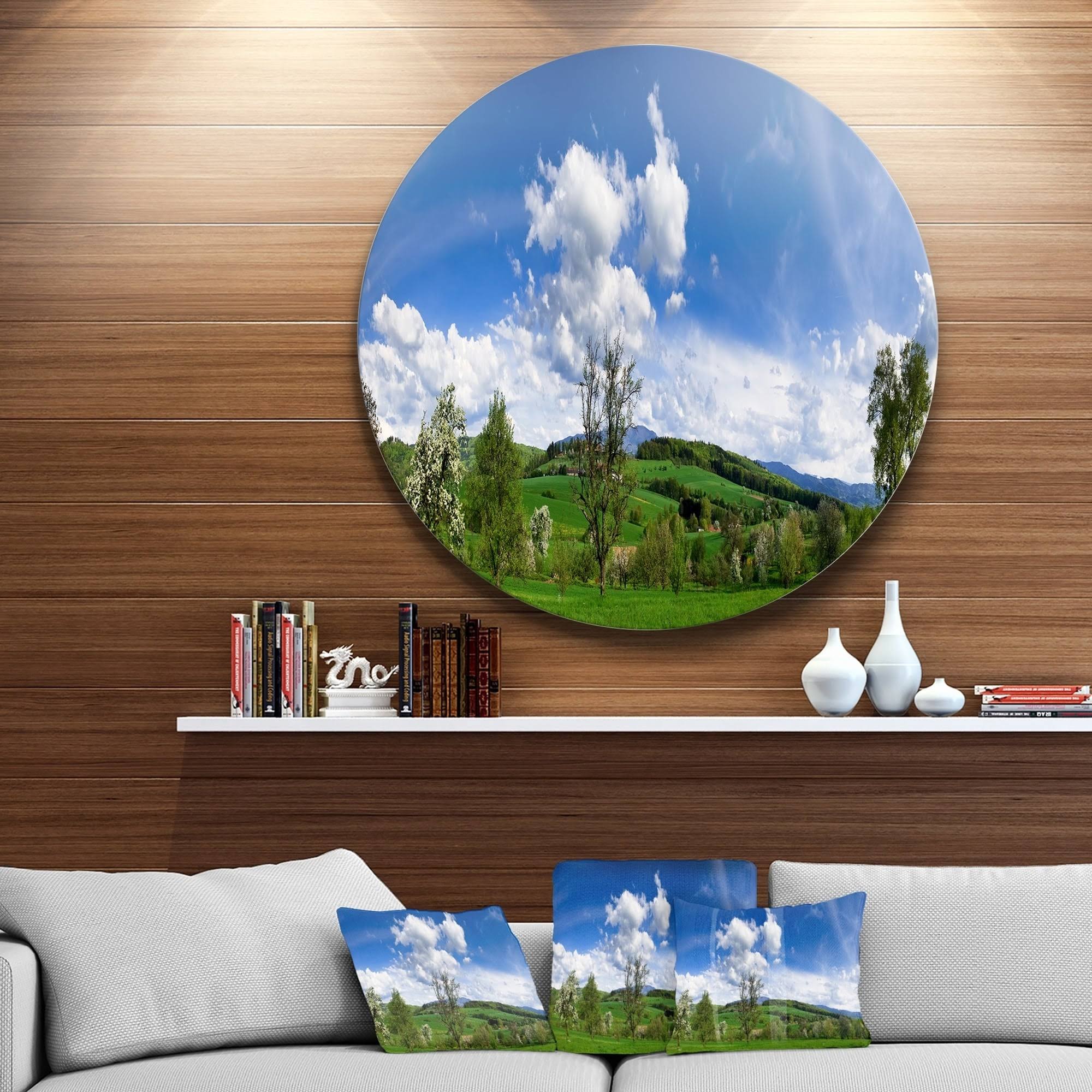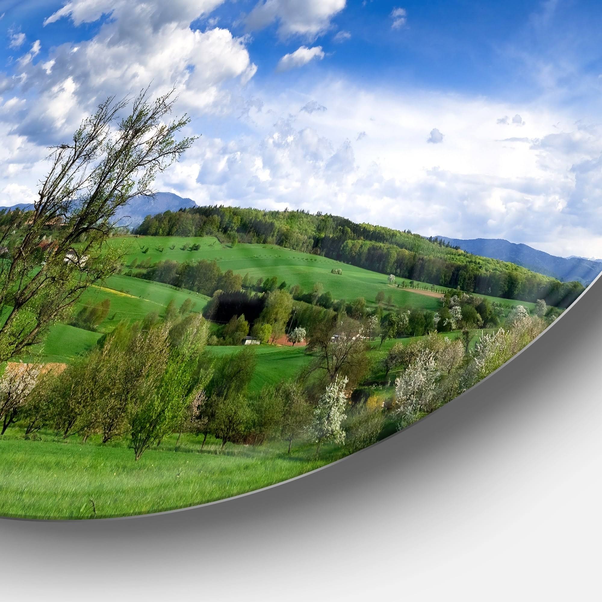 Designart 'Green Blue Spring Landscape' Photo Disc Metal Wall Art - 29 x 29 - Disc of 29 inch JP6G_YFB014
