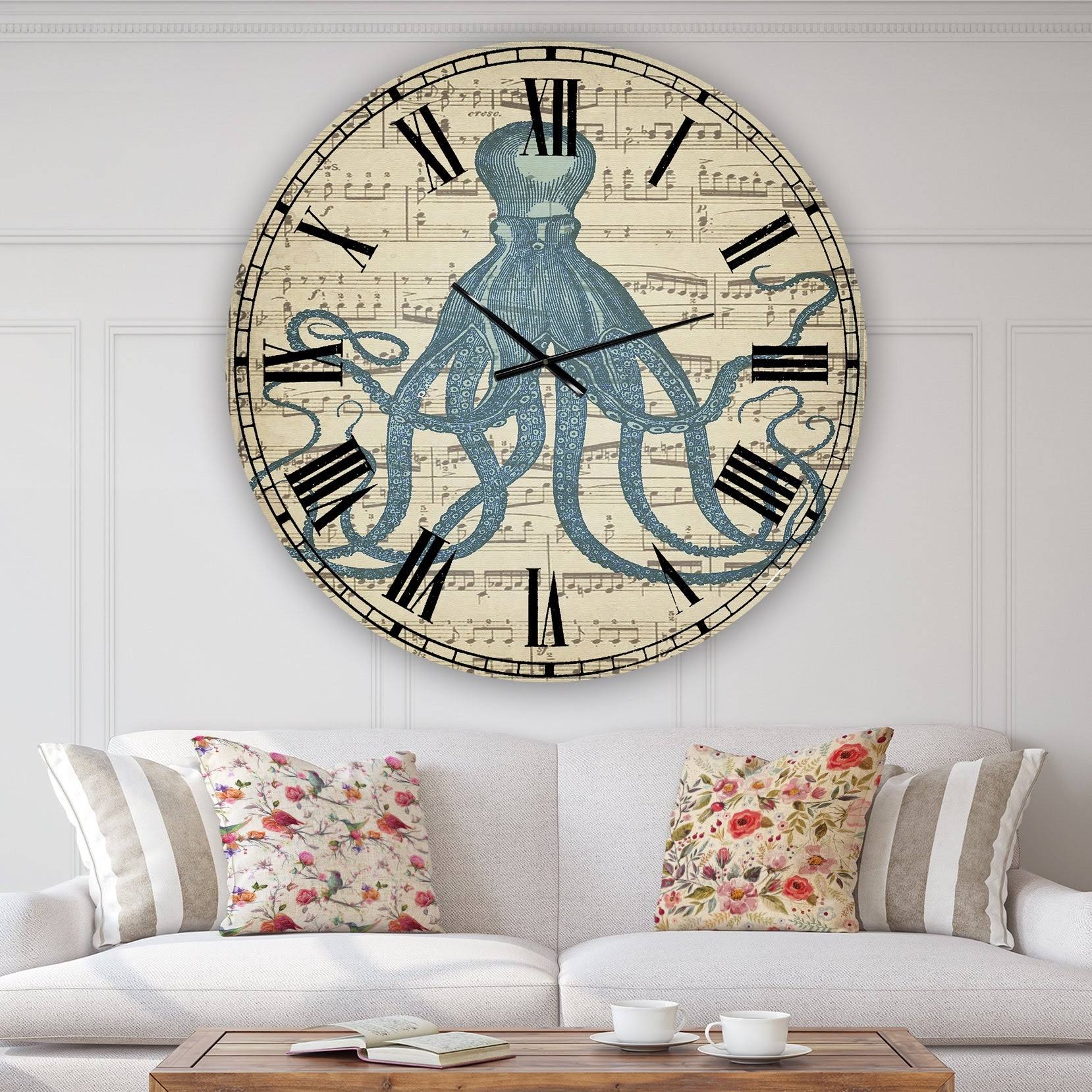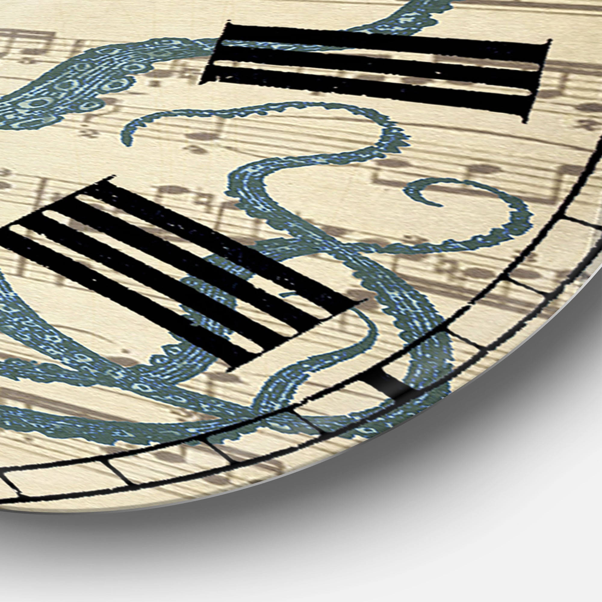 Designart &Octopus Music Score II& Large Nautical Coastal Wall Clock - 38 in. Wide x 38 in. High DQ1X_SJX732