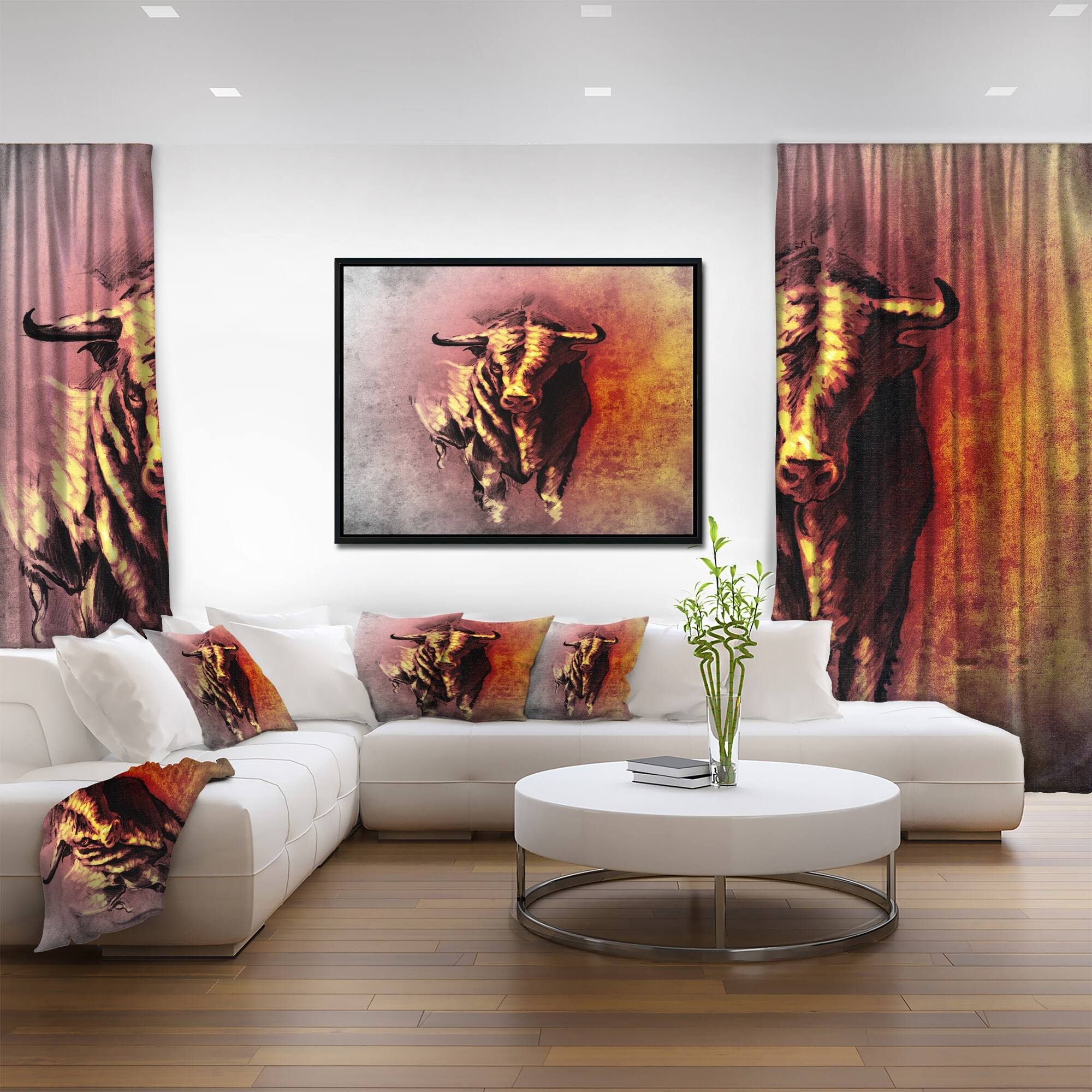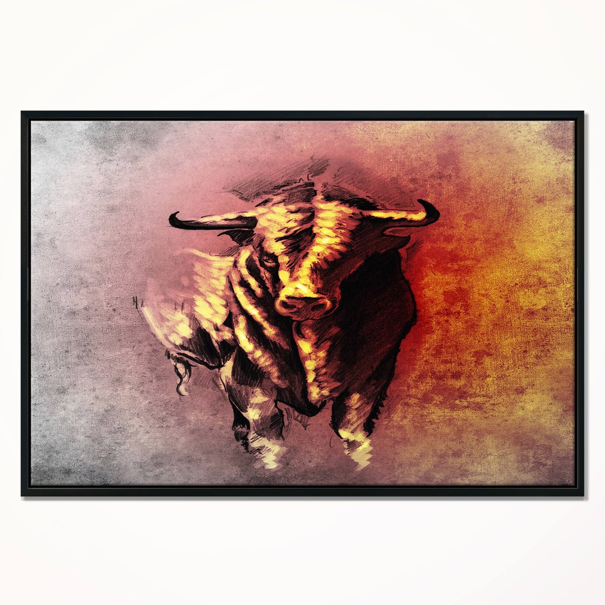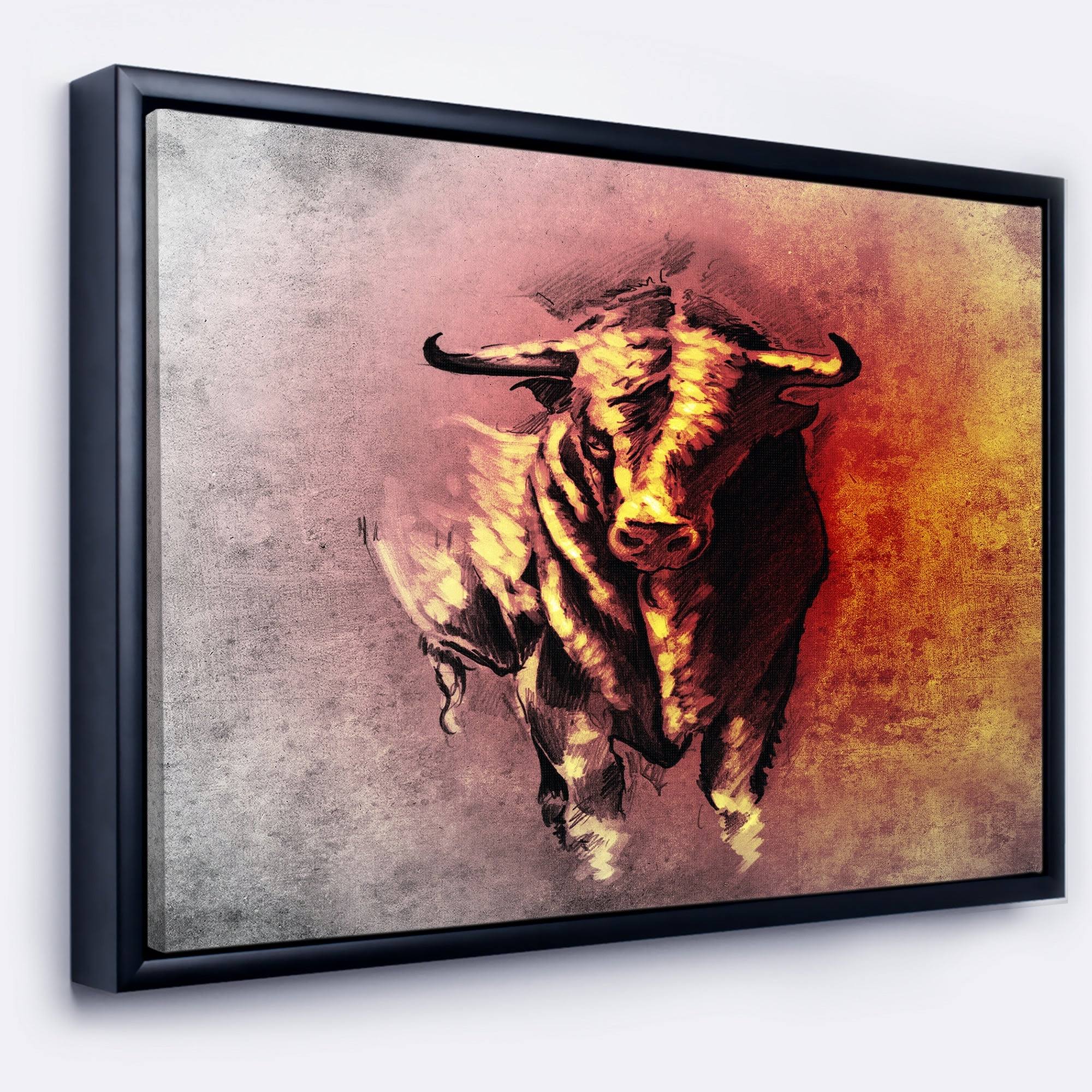 Designart &Spanish Bull Tattoo Sketch& Abstract Print on Framed Canvas - 40 in. Wide x 30 in. High - Black FS4Y_CEN015