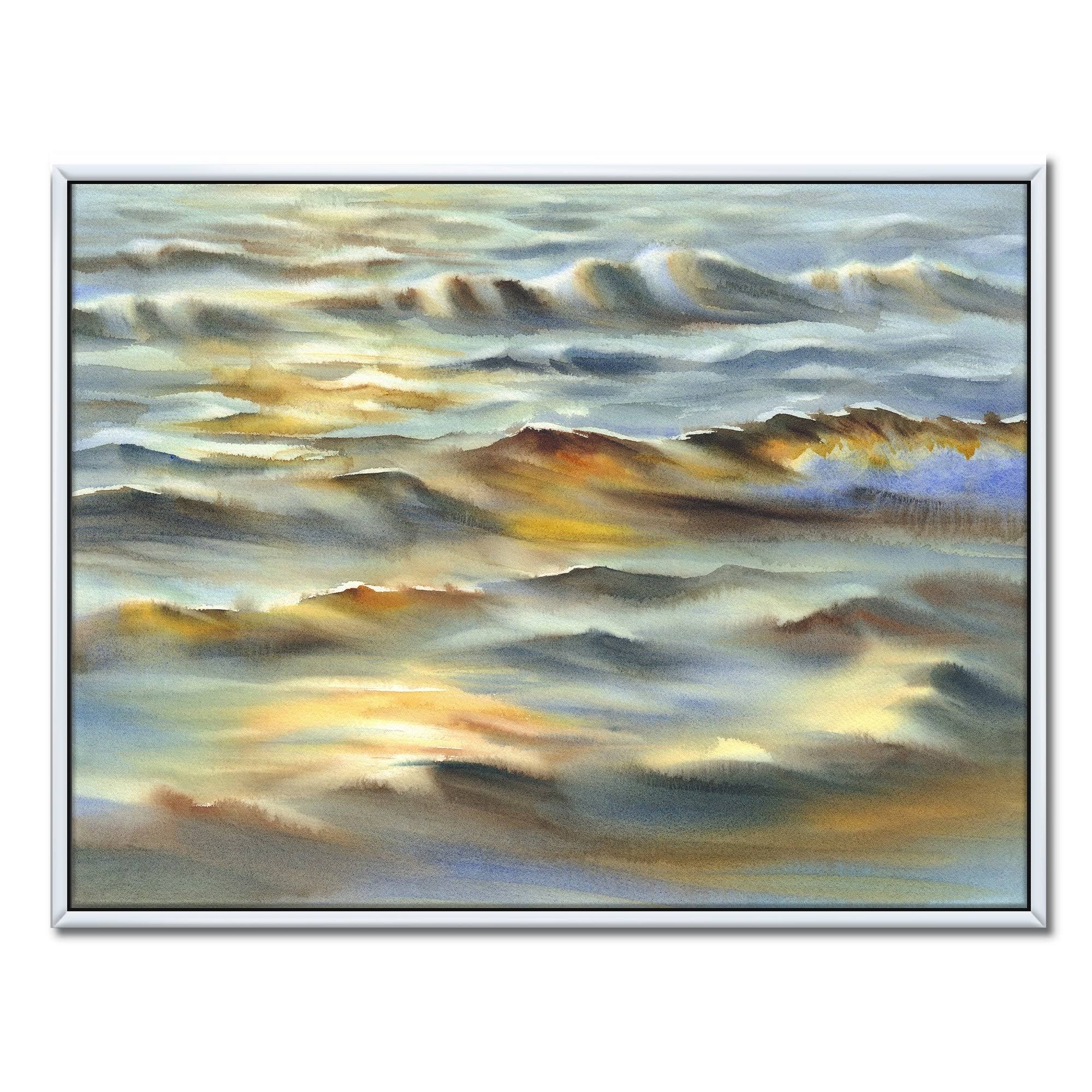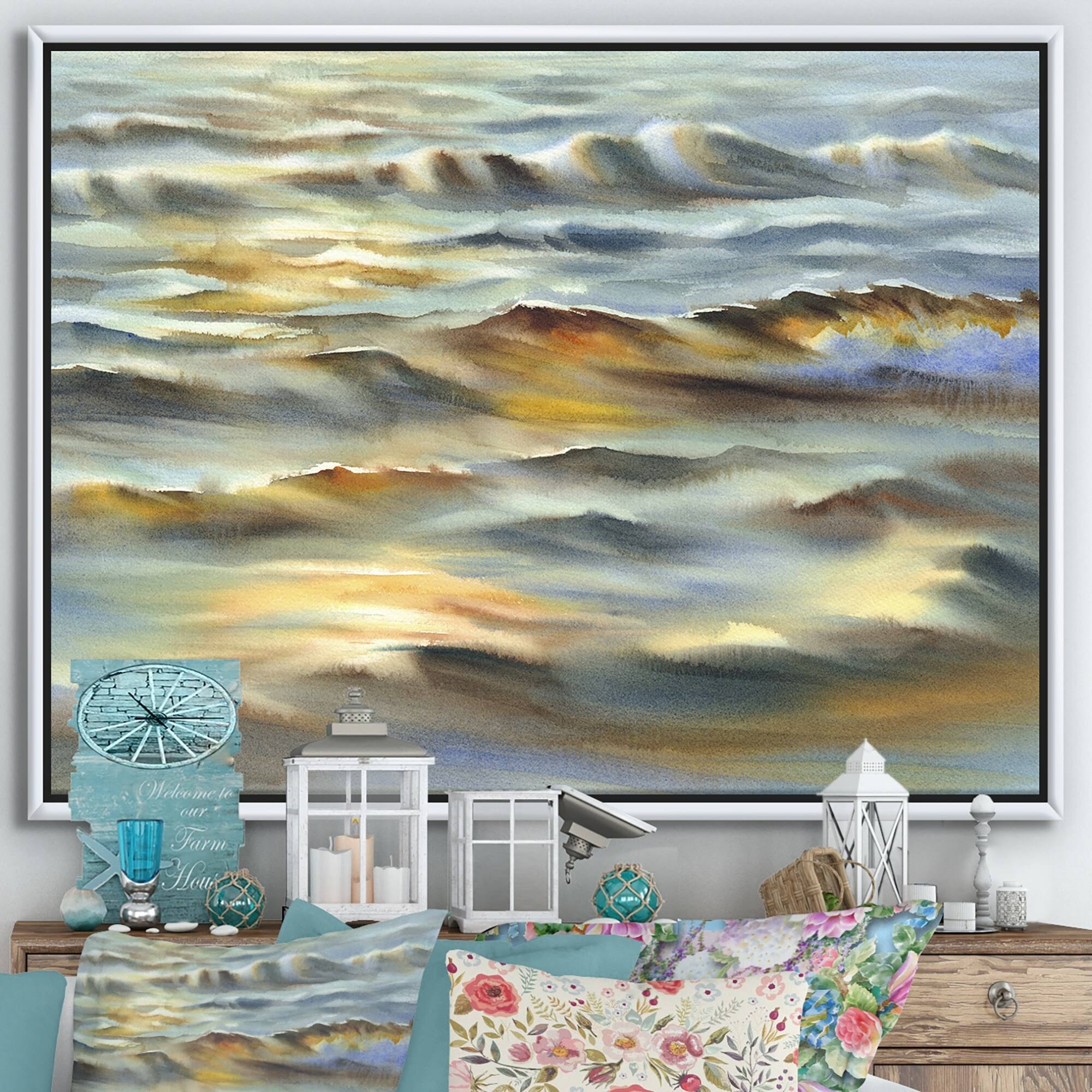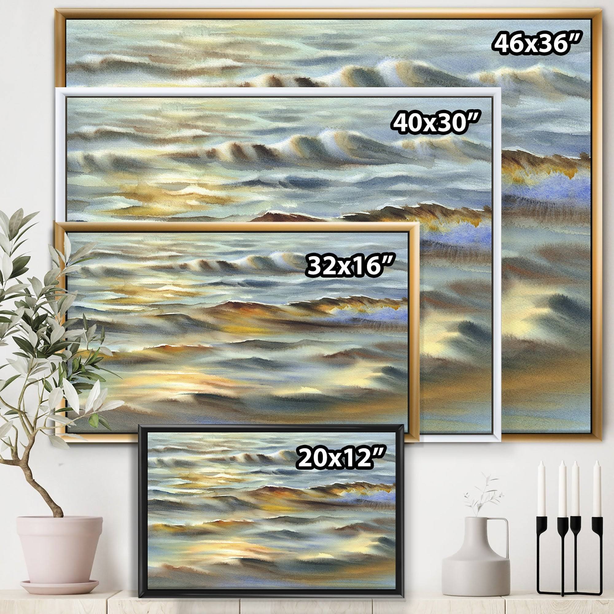 Designart 'Sunlight Reflections of Evening Time Waves' Lakehouse Framed Canvas Wall Art Print - 40 in. Wide x 30 in. High - Whit PM0R_UJK243