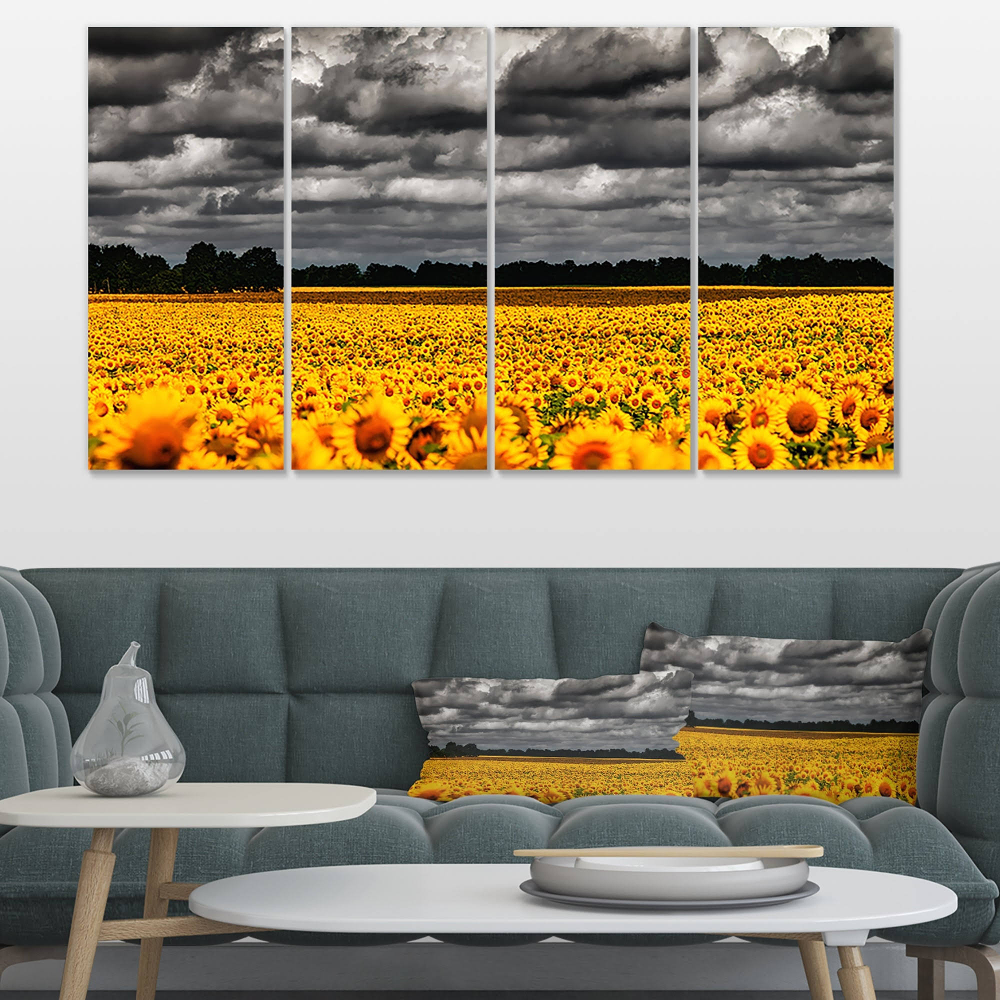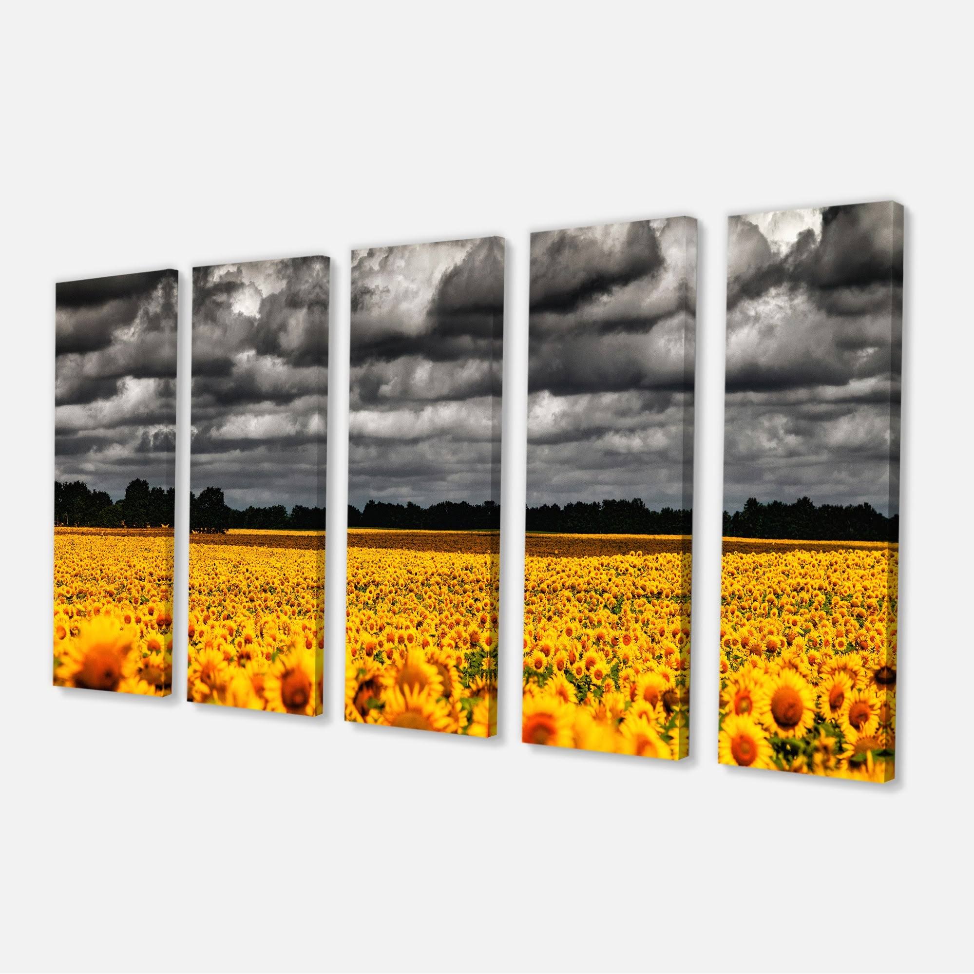 Designart &Van Gogh Summer with Clouds& 4 Piece Graphic Art on Wrapped Canvas Set ZC6K_YQF123