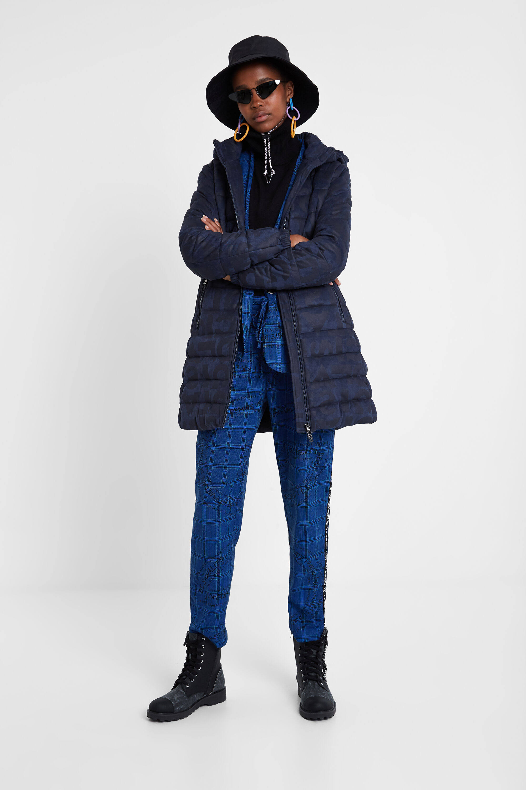Desigual Women's Letras Padded Jacket DS0AP19WWEWAA0000000 (S000002665915 Navy 42 EU) Long DESIGUAL Jacket in blue or red with patterns. Detachable hood and button on the cuffs. Zippered pockets on the front. Zip closure.