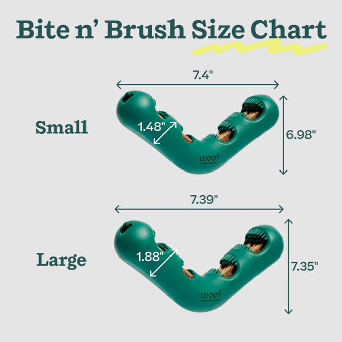 Turn treat time into tooth care with the Woof Bite N’ Brush, the fun and effective way to keep your dog’s teeth clean! This dog dental chew toy is designed with durable, textured bristles that help clean teeth, reduce plaque, and massage gums, all while your pup enjoys a tasty treat.