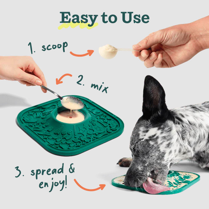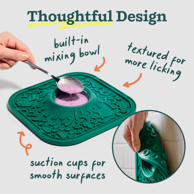 Turn treat and meal time into a calming, engaging activity with the Woof LickMat. Perfect for peanut butter, yogurt or wet food, it encourages slower eating, mental enrichment and stress relief. Durable, non-slip and easy to clean, this dog enrichment mat makes mealtime fun for dogs of all sizes.